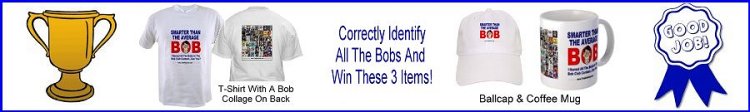 2) Those who completely and correctly identify ALL of the Bobs will win a special edition Bob Club T-Shirt and a matching coffee mug. As if that isn't enough, winners' names will be posted here for all the world to gaze in awe and marvel at!